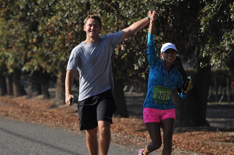 Another race we both did together was the Davis Moonlight half marathon. This was one of the most difficult races because it was over ninety degrees throughout the entire race.  Amanda and I decided for our post race meal we wanted In-n-Out burger which we deserved after sweating our booties off. We even opted to go inside to pick up our order so everyone could see our new medals because-hello we needed to show off! “Yes we did just run 13.1 miles, thank you!” We didn’t stop there. We then decided to get hats and take pictures with the nicest employee! Oh the things you do on a post-run high…