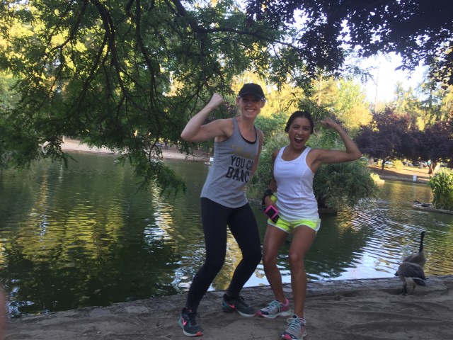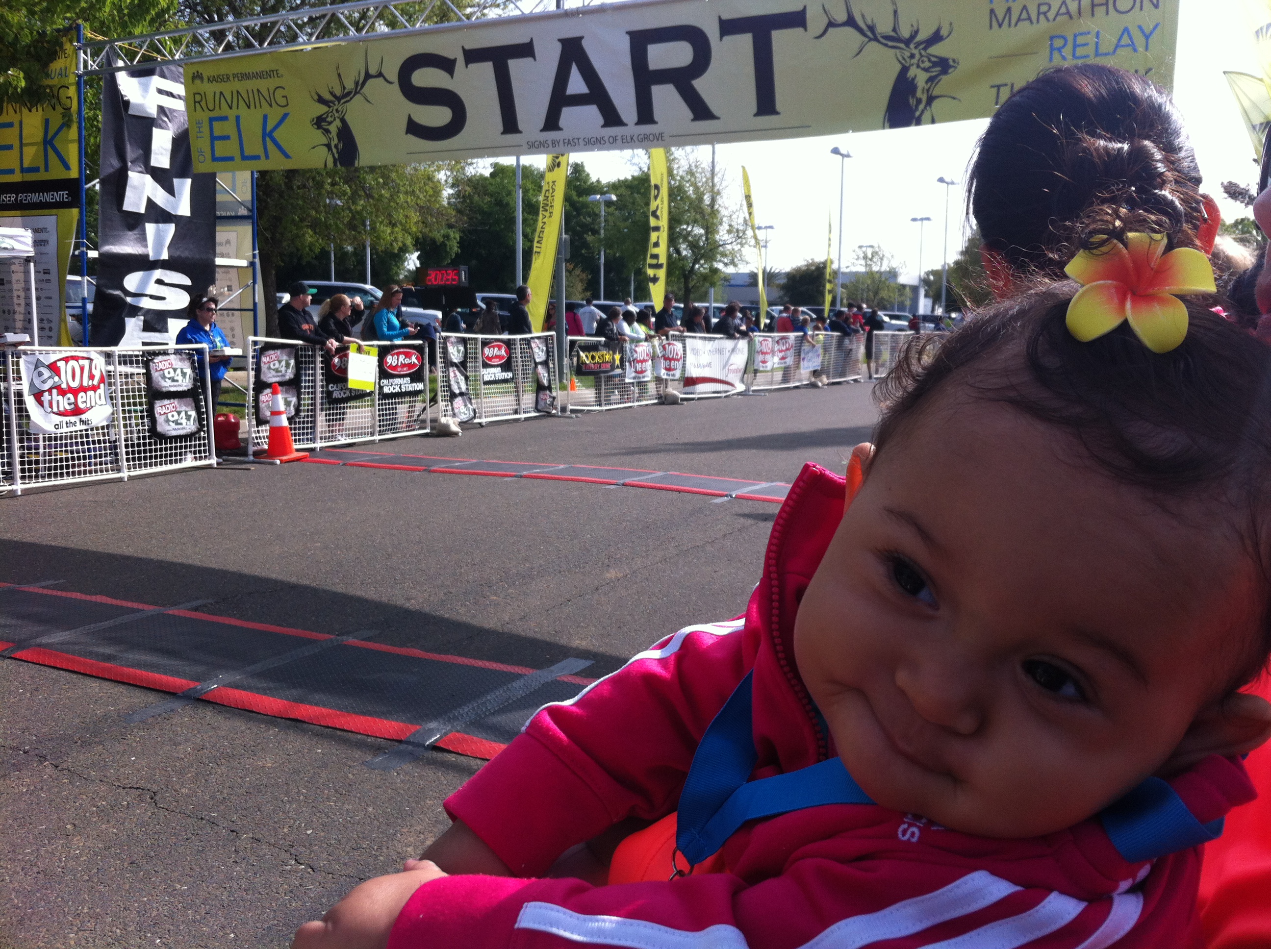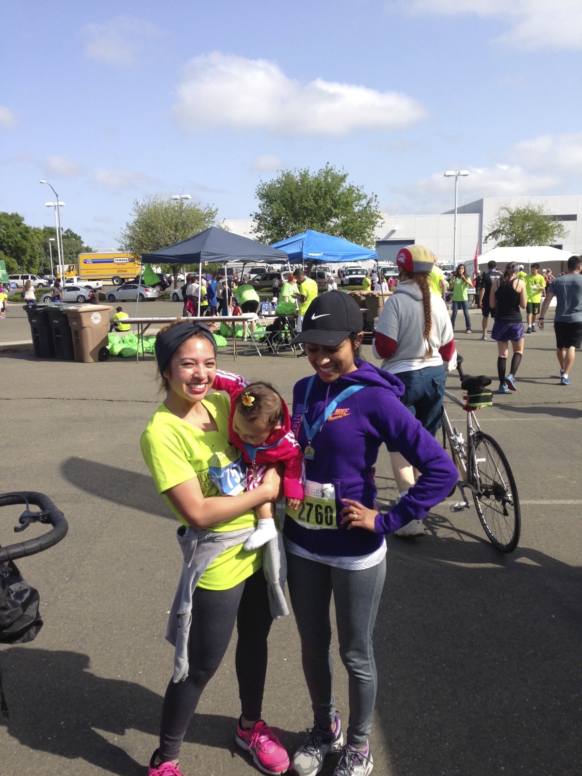 On our way to the car to drop off some of our personal items, we saw my running buddy Abby! She was running the 5k with her daughter Stella (who is in the stroller and was not feelin’ our photo op). Abby and I run together almost every weekend and it’s always a treat to see her, unexpectedly, at races.