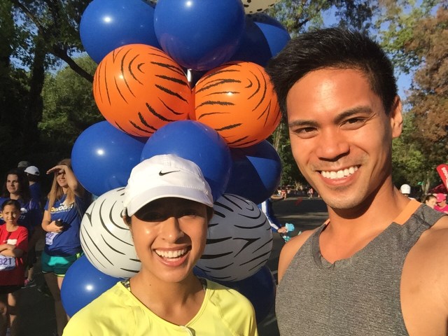 I have a pretty good idea of how fast my cousin runs since we’ve completed several races together (two half marathons in San Francisco and a Thanksgiving Day 10k). I really had no specific expectations for this race-I hadn’t set a goal. I just thought it would be a beautiful day, to spend time with my cousin, doing something we both love. We started the race together and I soon noticed we were running at a 7:50 min/mile pace. I was really just trying to keep up with him. I think he was going at a “slower” pace to take it easy on me. Meanwhile, my little legs were working hard. I told Aaron with excitement (and shock) that if I stayed with him I may set a personal record. At that point, Aaron wanted to help keep me on track and continued to lead the way. He stayed about two steps ahead of me which kept me motivated. It was pretty funny that I decided not to wear my earphones because Aaron didn’t have a pair but we quickly realized that we were not really in the “talking and running” mood. We were FOCUSED!