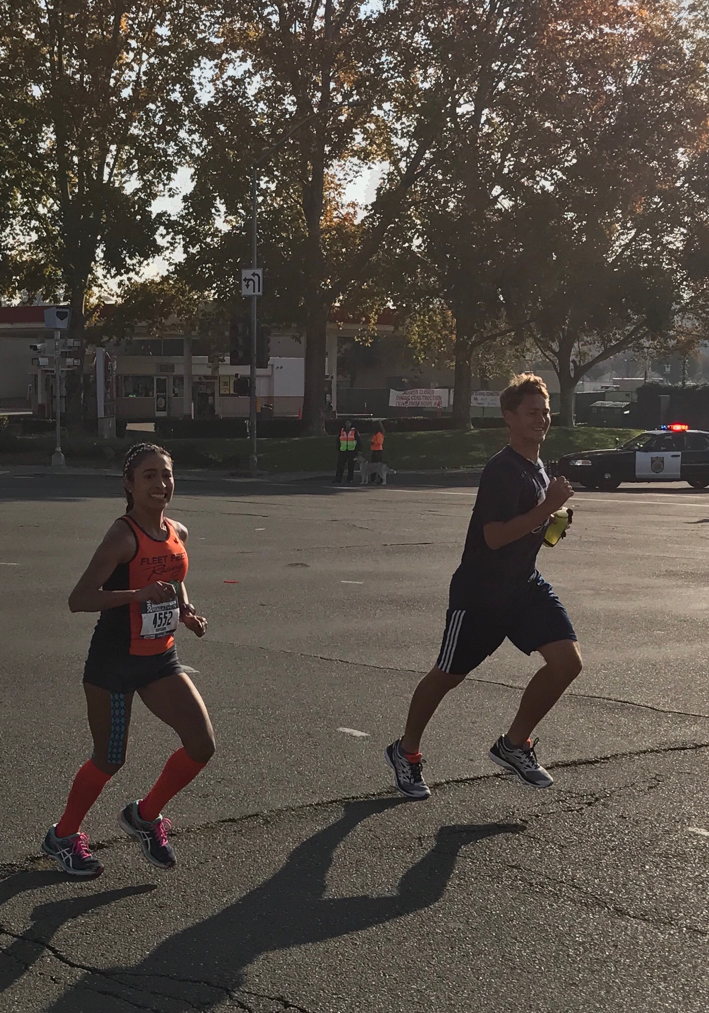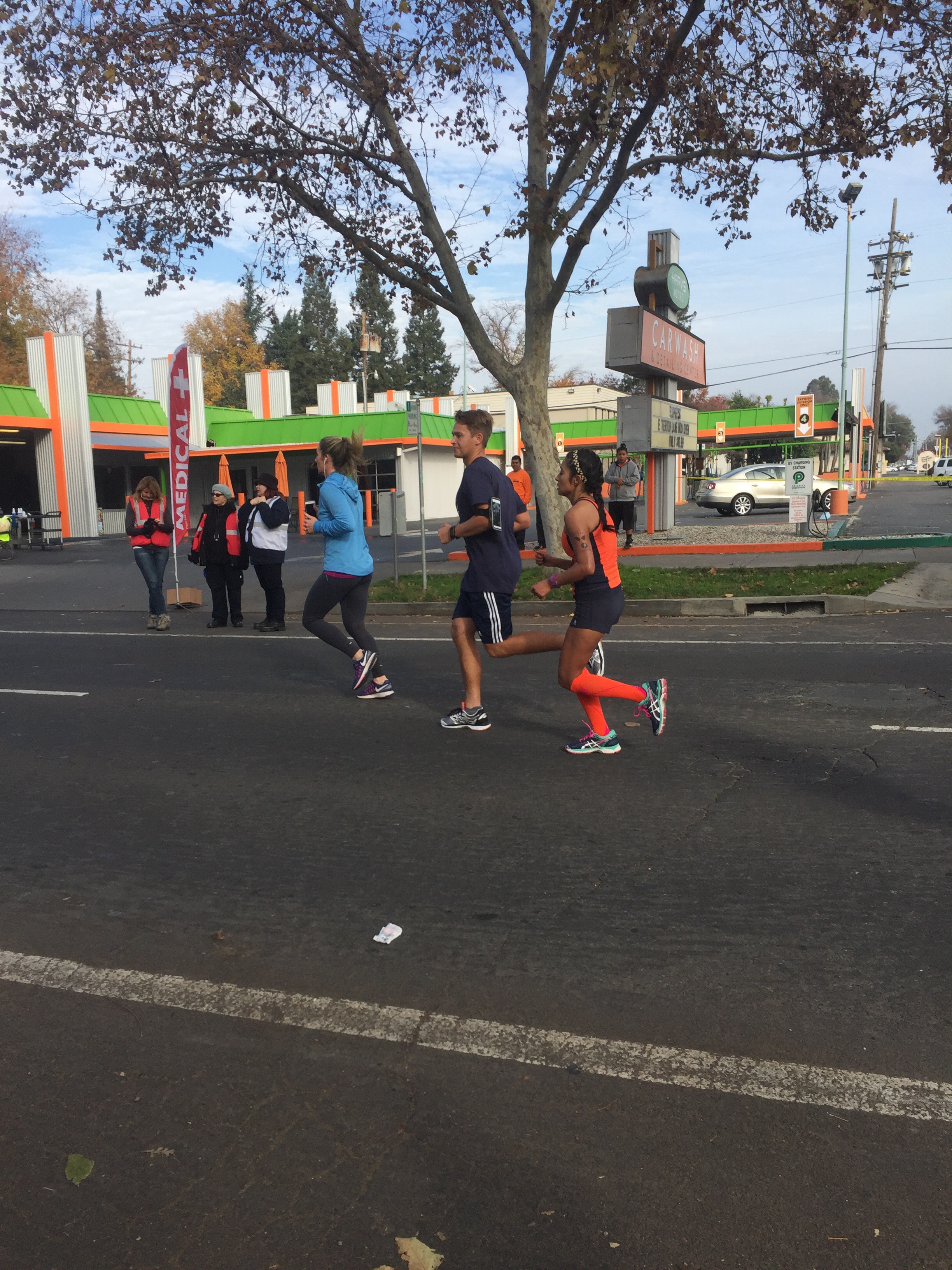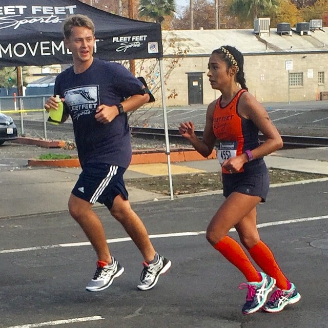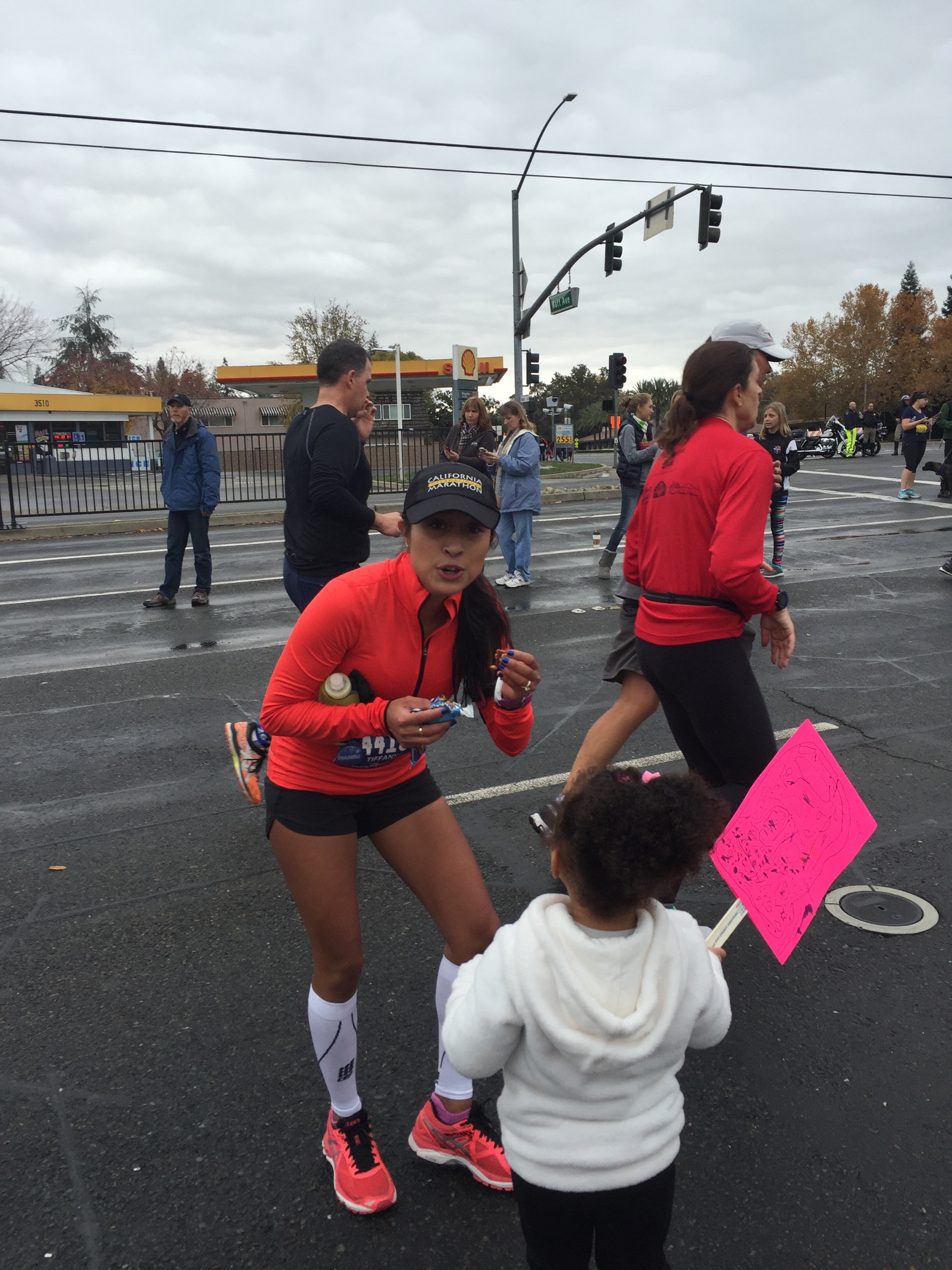 Approaching the bridge I started to feel my legs get more and more tired. Seeing the Team Ride coaches on the bridge was awesome. I was waiving and smiling at them. Dan kept giving me water and coaching me along the mile, but noticed I was beginning to drop my pace. He kept telling me to “pick up the pace, let’s go.” When we got to East Sac I literally just stopped. Dan had no idea I was going to stop, and neither did I. I was starting to doubt myself and I knew the road ahead was still very long. He turned around and said, “what are you doing?” I screamed back, “I just need 5 seconds, give me 5 seconds.” He said, “you don’t have 5 seconds. These 5 seconds can be the difference between a BQ and disappointment let’s go, NOW!” I was a mess. I may or may not have cussed him out a few times, but no matter what he would never let me give up on myself. He grabbed me by the hand and holding hands I started moving again. It’s like he was recharging me with his positivity and coaching.