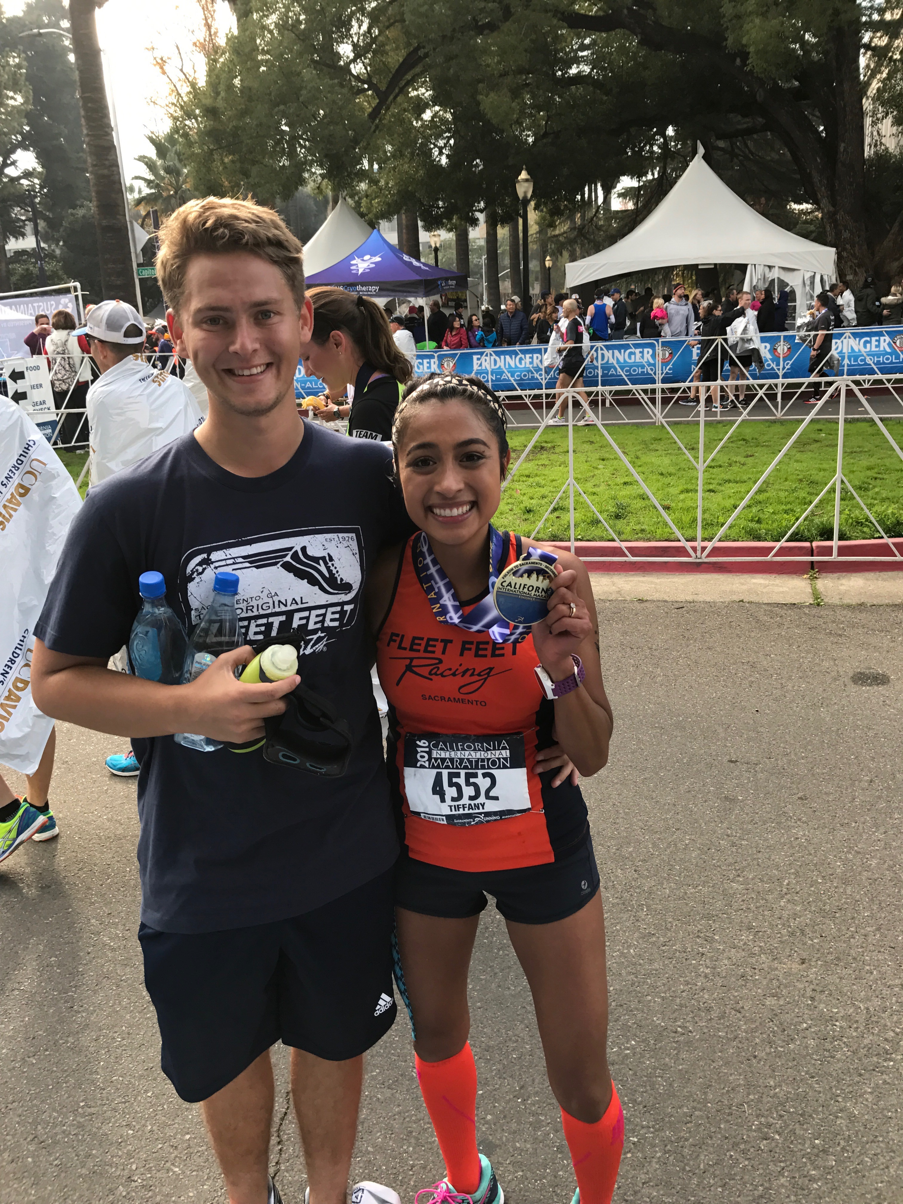For anyone who knows me or has been following my journey for sometime will know the journey has not always been easy. My first marathon in 2014 I finished at 4:57, a year later my second at 4:29, and my third 4:17 in April 2016. Initially, my coach and I decided my goal for CIM would be to try to run a 3:45 marathon. It was a big push from my last finish in April. After running Urban Cow half marathon and talking to my friend who encouraged me to go for it, I asked my coach if I could try and train at a 3:33 marathon pace. We decided we would try it out and in a few weeks evaluate how it was going. I had two separate injuries during this training cycle (my IT & hamstring) and we didn’t know if it would be possible to get hit my GMPs during the marathon. I missed runs because I needed rest and would email my coach weekly asking if I should change my marathon goal. Every week, he said no. No matter what, he would never let me quit and calmed my nerves even when I would go into panic mode (which was often).