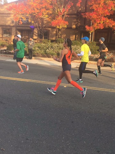 My friend Jill met me at mile 10 and I literally couldn’t tell her enough, “I’m so happy to see you.” Jill ran me through some hilly miles. We chatted back and forth at times, and someone even said, “I don’t know how you two are talking right now?!” I responded, “Just a casual run with my friend” lol. Jill was the best pacer a girl could ask for. She was attentive and stayed right on pace. She calmed me when I was breathing heavy and told me to “relax.” She even-handed me water over and over and would constantly check on me. At some points we didn’t speak at all. We ran through the hills together and she made it easier for me to feel strong when I was beginning to doubt my strength. We initially planned on running miles 10-17 together but as we approached mile 17 she asked me if I wanted her to stay until mile 20, and I without a doubt answered, “yes please, thank you so much.” I remember seeing my coworkers Lisa and Jeff along the way and it really gave me the extra energy I needed to remain strong and focused. Around mile 20 we saw Dan waiting to take over pacing and they switched off.